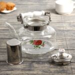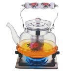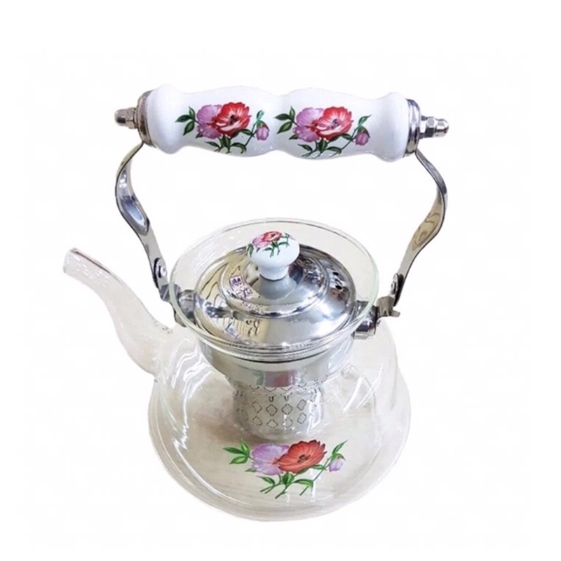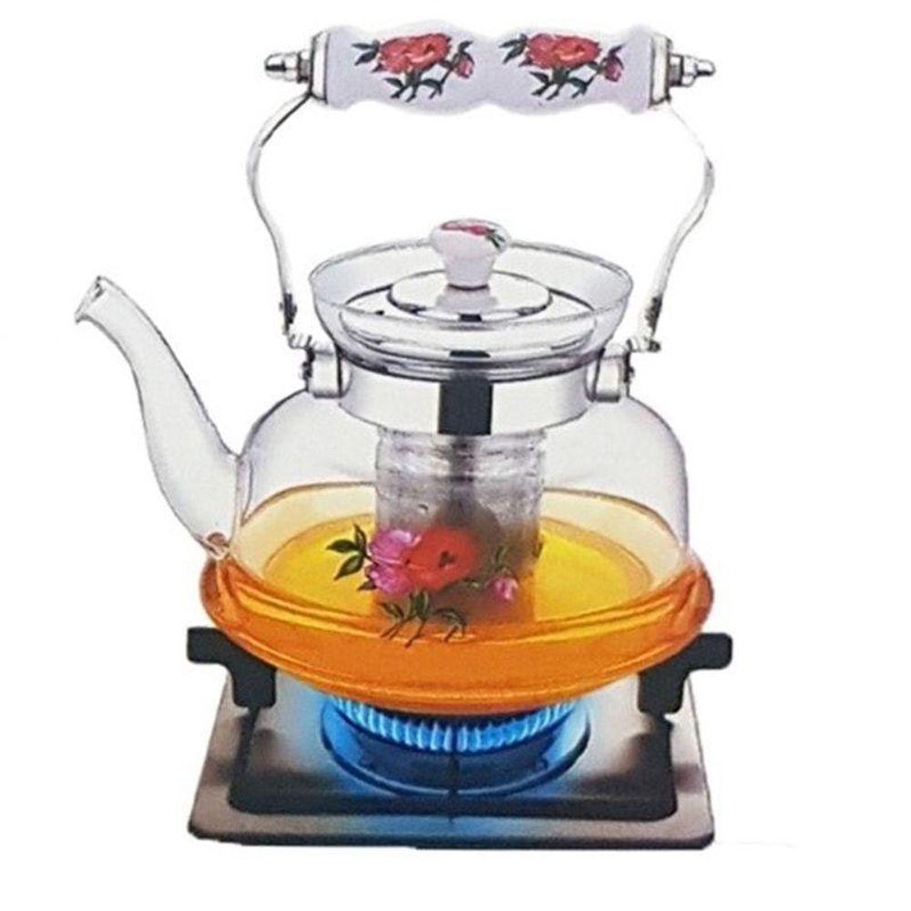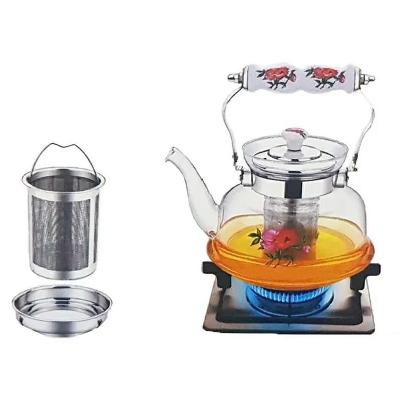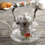 Chaleira de vidro em estilo retrô com infusor de chá e alça de inox.